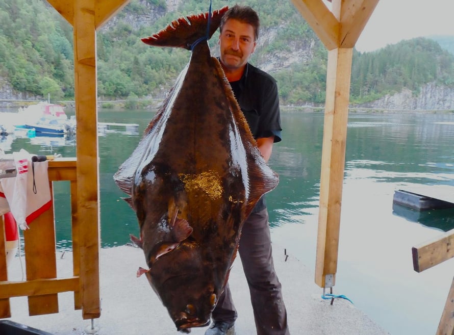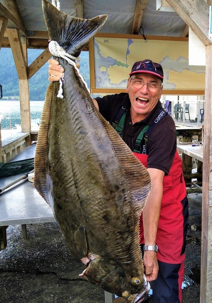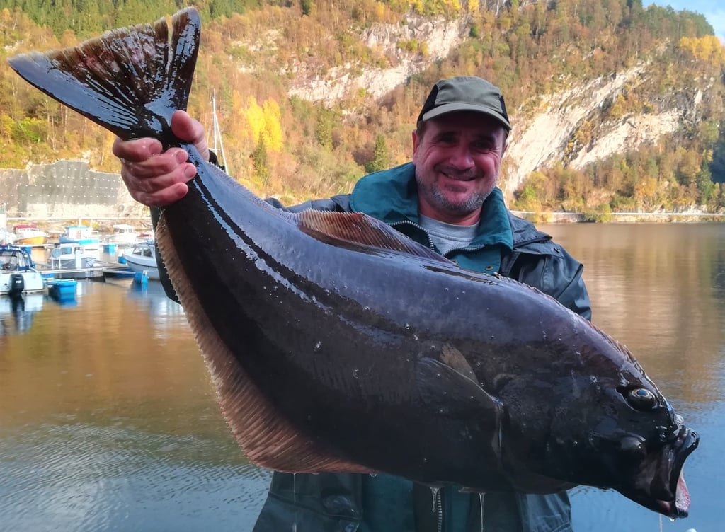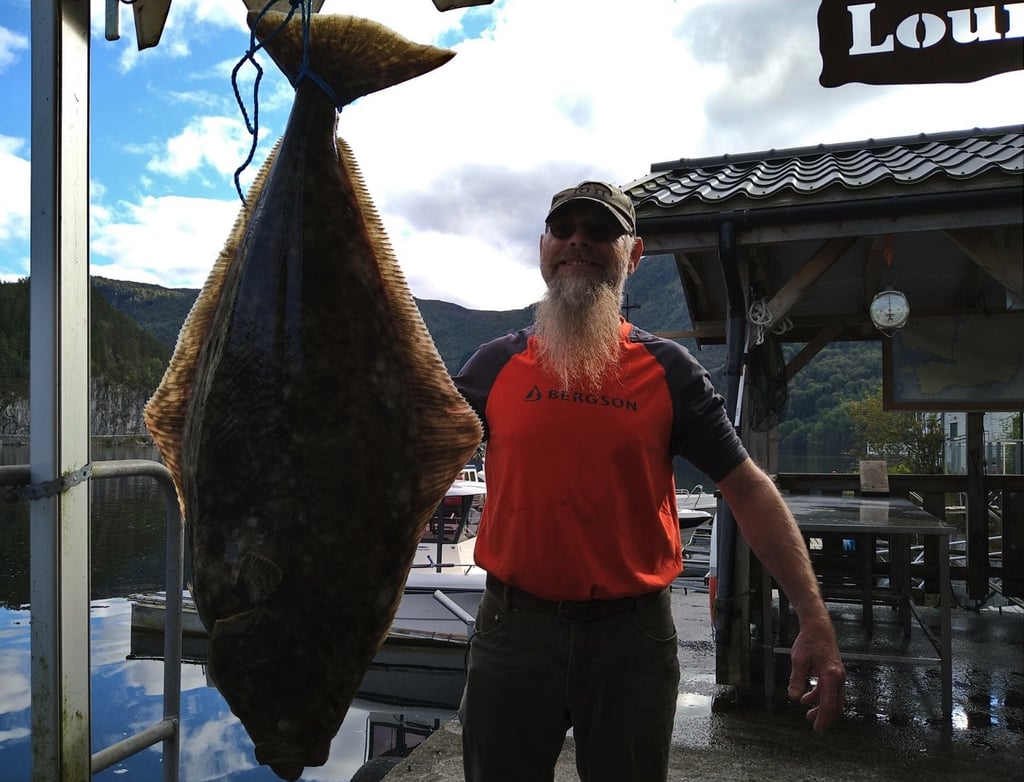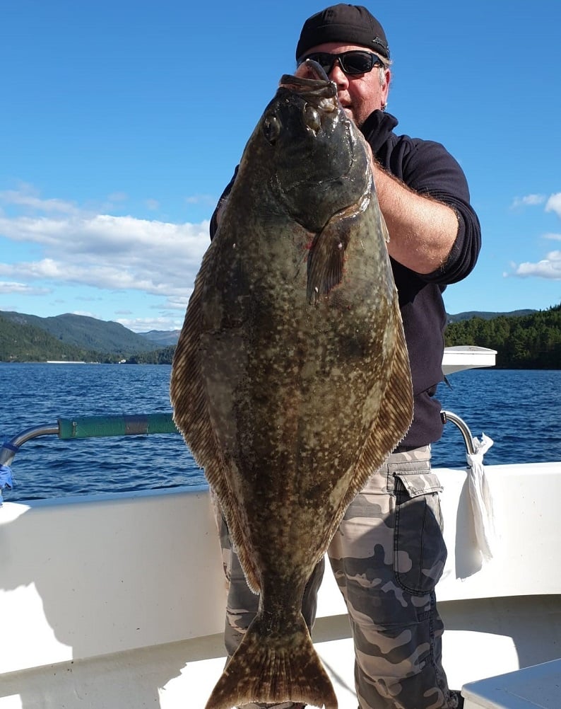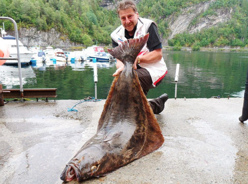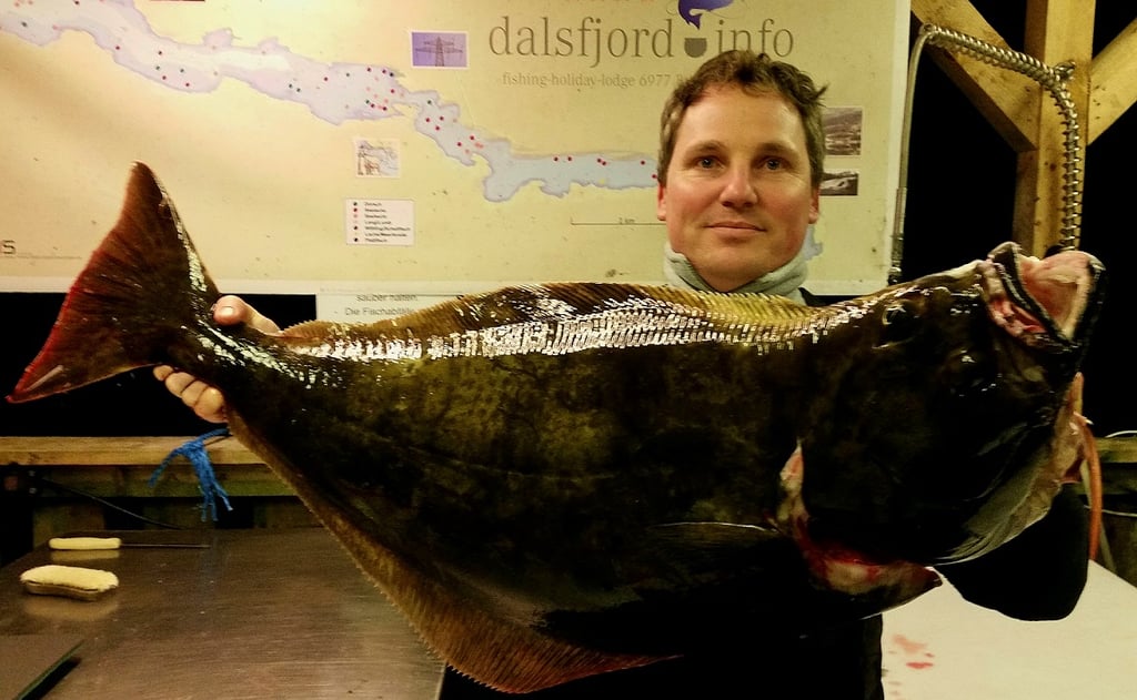 Der Heilbutt wird in stattlichen Grössen hier in unmittelbarer Nähe unseres Dalsfjord Fiskecamps gefangen, aber auch im weiteren Verlauf des Dalsfjords werden