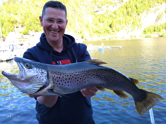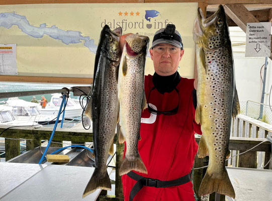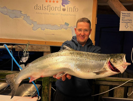 Hier bei uns im Dalsfjord ist das angeln auf Wildlachse gratis. Sie werden praktisch direkt vor der Haustüre gefangen. Man sieht sie im seichten Wasser in voller Grösse vorbeischwimmen. Unbeschreiblich ! - mehr kann man kaum dazu sagen. Adrenalin Pur !