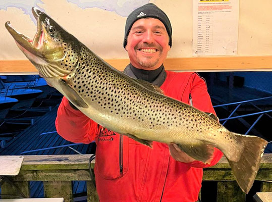 Wolfsbarsche ist stets mit schönen Meerforellen als Beifang zu rechnen.