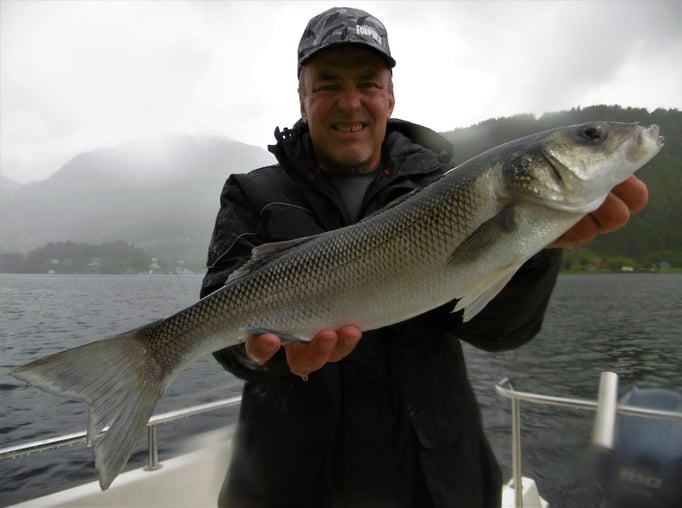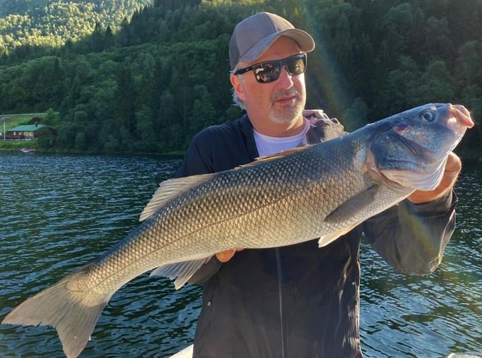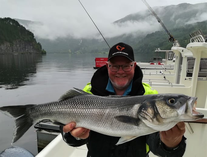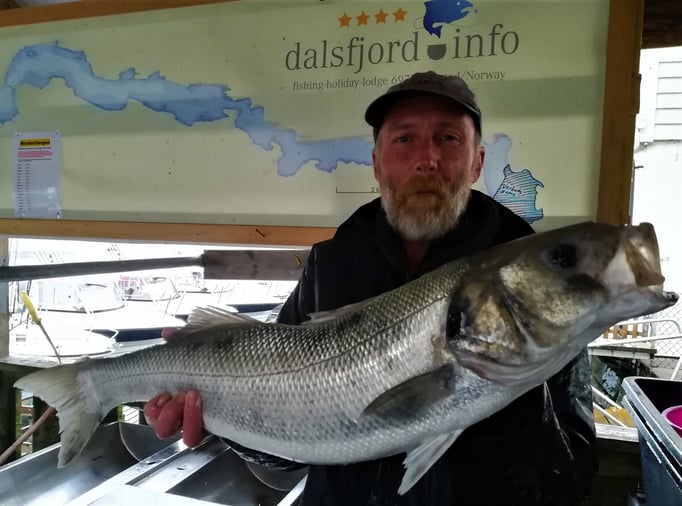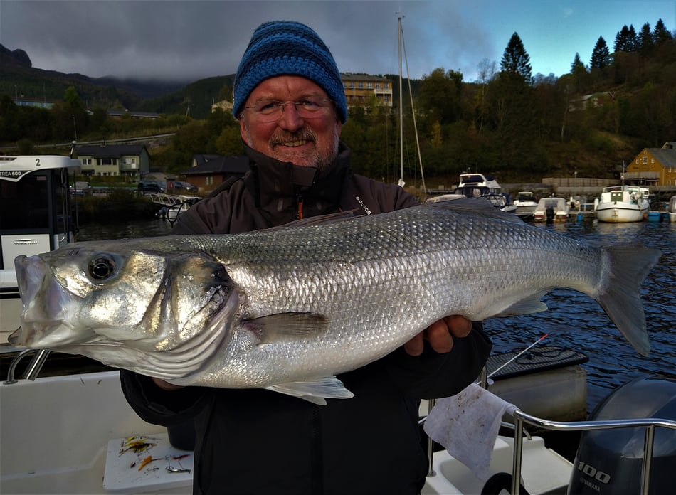 Der hier in Bygstad zahlreich vorkommende Wolfsbarsch fühlt sich im glasklaren Dalsfjord besonders wohl und wächst zu Rekordgrössen ab. Beim gezielten Angeln auf