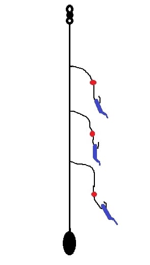 Wenn man eine der Bissstellen gegen ein stärkeres Vorfach mit grossen Haken und einem ganzen Filet oder dem Schwanzstück einer Makrele austauscht kann man zusätzlich auf den Biss eines grossen Räubers hoffen.