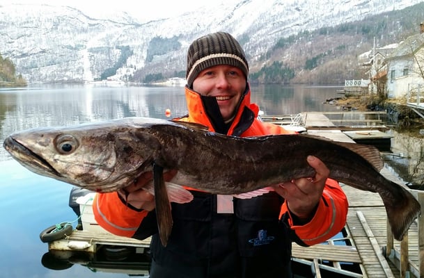 Gestern fing ein Gast ca. 30 Flundern vom Kai bei der Tanke und konnte einen Hammerbiss leider nicht verwerten. Ein anderer zog 4 grosse Nagelrochen. Haie und Rochen sind mittlerweile verstärkt sogar bis zur Sandbank im Flachwasser nahe der Gaularmündung vorgedrungen. Gestern wurden dann auch nochmal etliche Platte vom Bootsteg im Hafen Bygstad gefangen, darunter auch fette Exemplare. Auch gute Lumbs (90er) aus 70m und etliche Leberwürste (kleinere Lengs) auf NK. Dorsche gingen auf Gummis nahe der Felswände. Leider machten einige Gäste keine Fotos - sie fingen nicht wenige Meerforellen.
