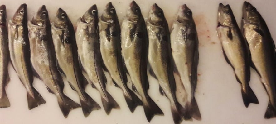 Dorsche, aber auch Rochen, Knurrhähne, Schollen, Pollacks und vorallem Schellfische gingen an die Bänder. Die Rochen wurden natürlich schonend zurück gesetzt. Der meist anzutreffende Rochen ist hier der Nagelrochen.