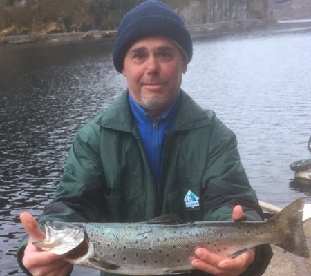 Nachdem einige gute Lachse bei den zwei Norwegern ans Band gingen, wollte auch ich mal wieder einen der Silberpfeile erbeuten und schleppte das Eisen mit 2,2 Knoten durch den Tümpel. Und hat er was gefangen ? Jepp ! . . ne feinen Lachs :)