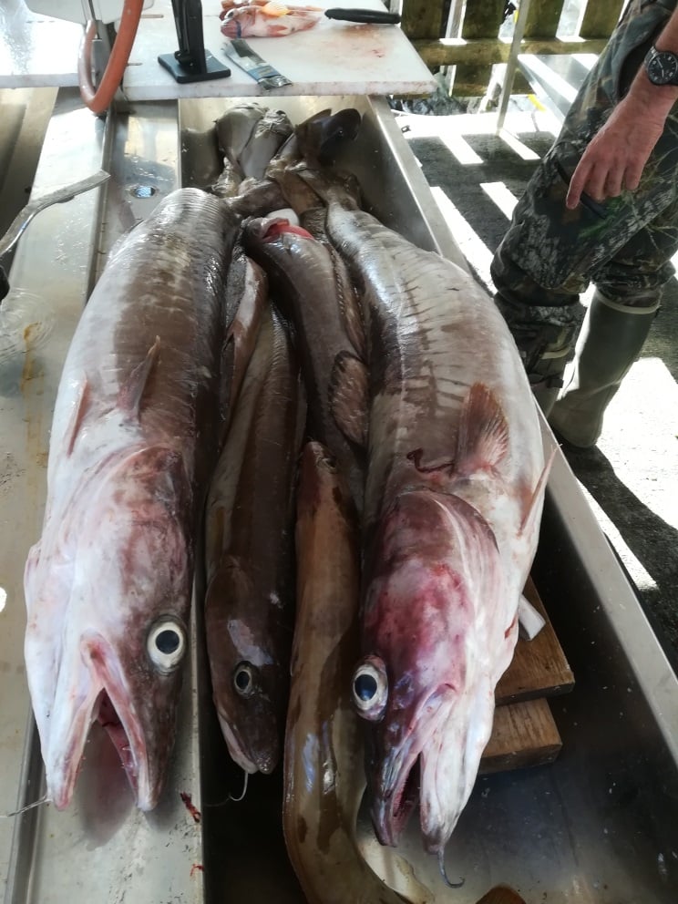 Rote und graue Knurrhähne gabs reichlich, doch nicht jeder ist so gross wie der rote Knurrhahn von Ramona. Dann noch Platte in allen Ausführungen, auch kleinere Heilbutte. Und natürlich Pollacks, Schellfische, Makrelen, Dorsche usw . . .