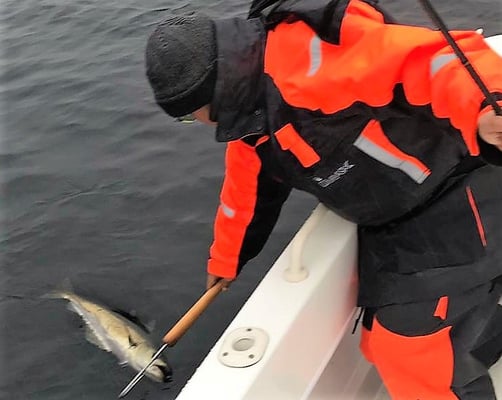 Vorbeugend den Neider-Kommentaren die ich täglich löschen muss: wir fangen all unsere Fische im windgeschützen Fjord - und nicht im Meer. Und unsere Fische werden auch immer alle mit der Angel gefangen und nicht beim Fischhändler gekauft. Ende . . hahahaaa :)