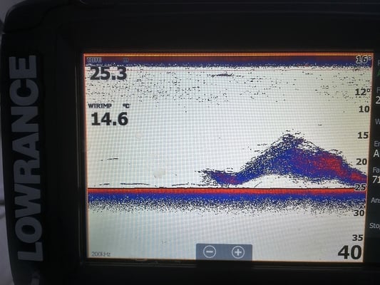 Wenn man so ein Bild auf dem Echo hat - wie dies hier im Kessel - dann sollte man mit Padernoster die Wittlinge ziehen - und dann gleich einen davon anködern . . schaden kann das nicht :)