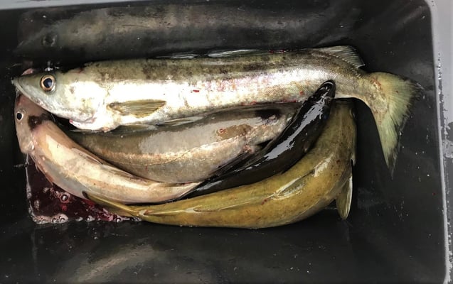 . . . neben Schellis und Dorsche gingen auch Makrelen, Aale, Heringe und die allgegenwärtigen Stöcker ans Band