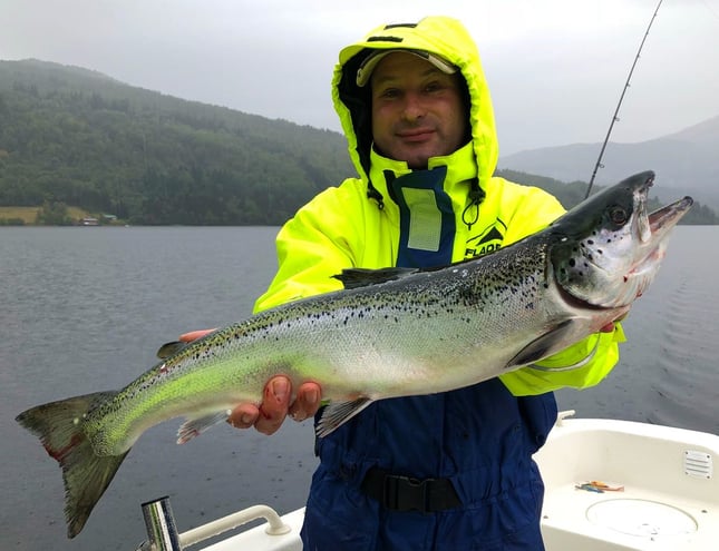 Ein anderer Gast ankerte im etwas mehr als knietiefen Wasser und fing an die 100 Salmoniden - darunter auch ein starker Lachs. Leider verlor er mehrere grosse Lachse im Drill.