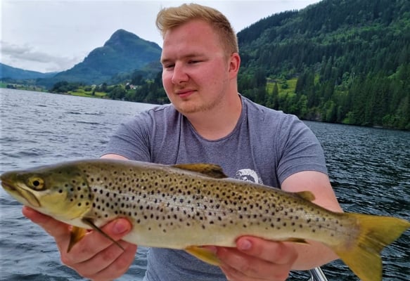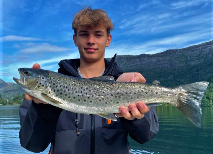 Erst im Juli fingen 2 Angler hier bei uns in Bygstad etwa 80 Meerforellen in einer Woche !