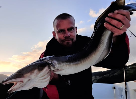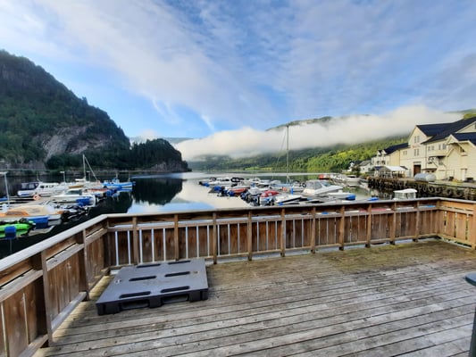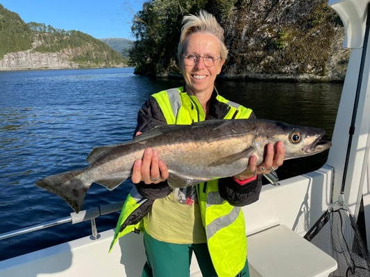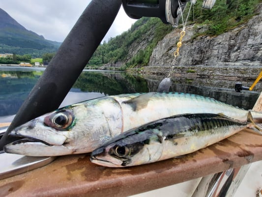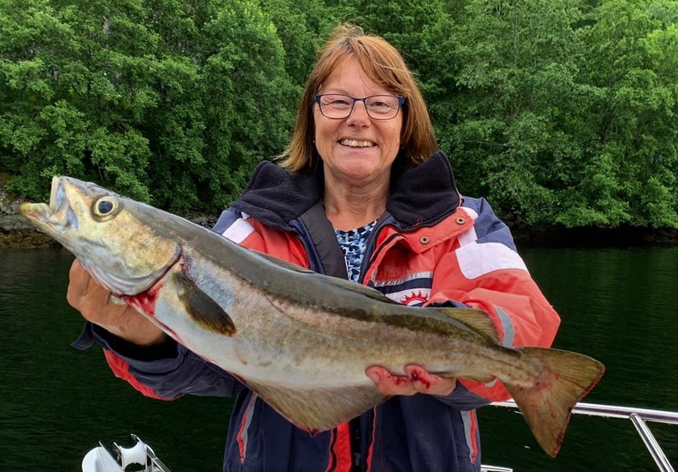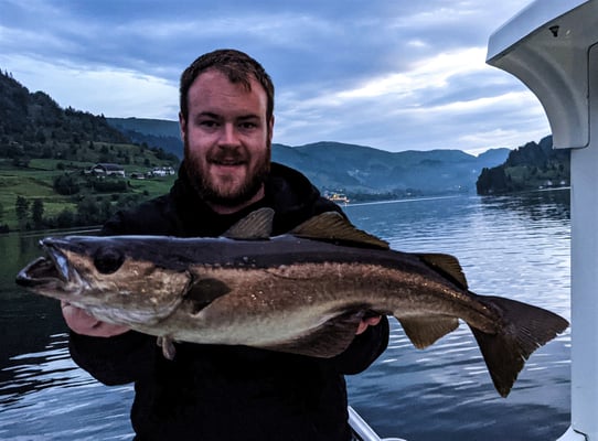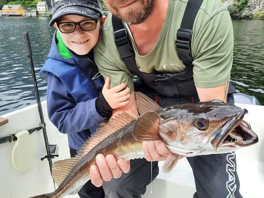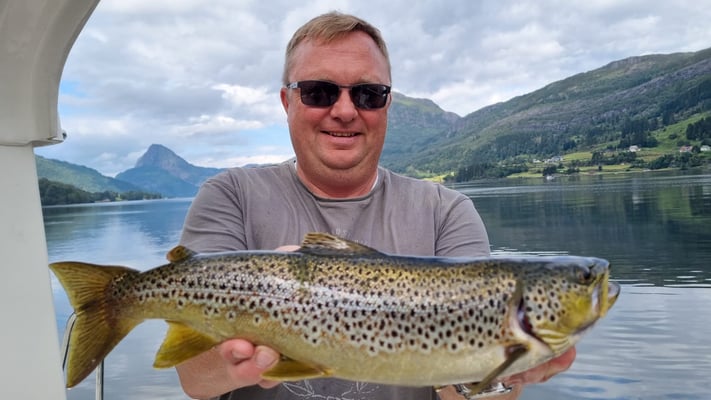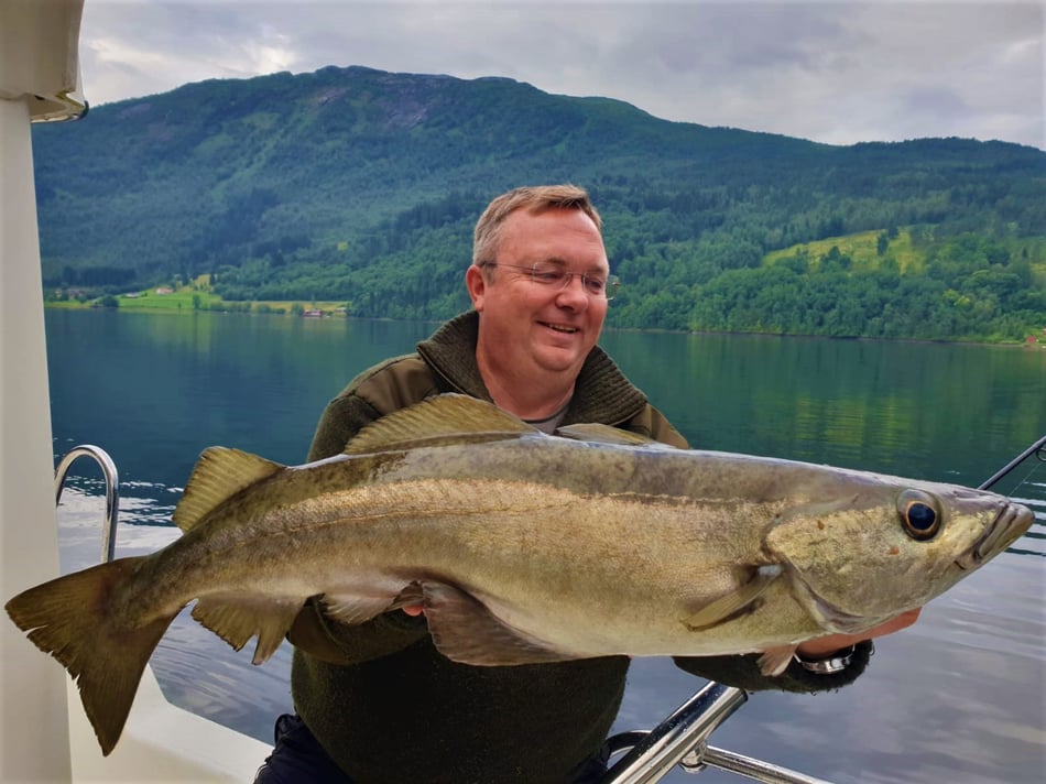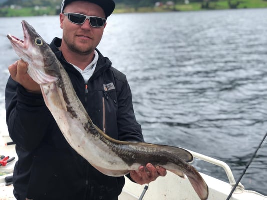 Nun . . . und das es hier keine Fische gibt, ist natürlich falsch denn gerade im hinteren Teil bei uns in Bygstad werden etwa 80% aller Fische von unseren Gästen gefangen. Die Fischgründe liegen hier bei uns fast direkt vor den Wohnungen und deshalb fahren nur wenige Angler weiter raus - und dann meist entweder zum Lengangeln im Tiefen oder zum Sightseeing - wohlwissend dass man je weiter man zum Meer fährt umso schlechter fängt. Aus diesem Grunde kommen viele Leute die ihr Ferienhaus am Meer oder in der Nähe des Meeres gebucht haben, zu uns um ein Boot zu mieten, damit sie überhaupt noch zu Fisch kommen.