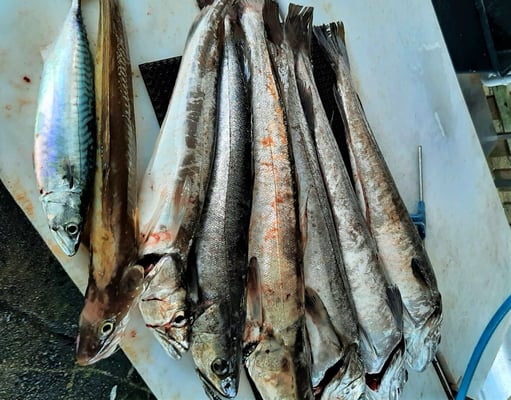 Makrelen können schon mal Längen bis zu 50cm und sogar darüber haben. Die schwerste in der letzten Woche wog gut 1,4 kg wobei unser Camprekord bei 1,6kg liegt.