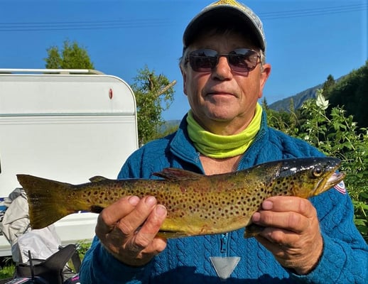 Auch ein Bekannter und ich selbst fingen bei einer kurzen Ausfahrt einige schöne Mefos. Natürlich ist nicht jeder Tag gleich gut und dann schwimmen die Forellen dem Köder nur bis vors Boot hinterher - aber beissen nicht.