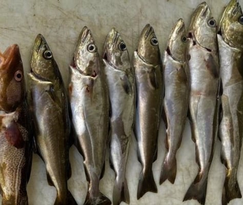 Makrelen satt und viele ordentliche Pollacks in strammen Grössen. Beide Fischarten kämpfen sehr gut an ultra leichtem Gerät und sie schmecken zudem auch prima.