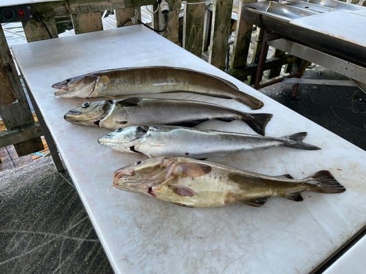 Es ist von allem was dabei. Und es sind auch nicht immer nur grosse Fische und die kapitalen Heilbutts die man hier fängt - nein auch wunderschöne kleine Fische verschiedenster Arten fängt man im Hexenkessel und wenn man mag, dann kann man natürlich auch mal ins ganze tiefe Wasser auf die dort lauernden Lengs und Lumps mit Natürködern angeln.