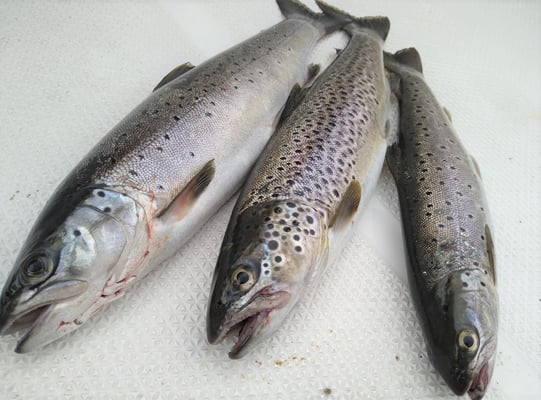 Einige Angler fangen viel . . einige Angler fangen wenig . . einige Angler fangen gerade so die Freimenge - aber einige Angler fangen bereits am ersten Tag soviel Fisch dass sie den kompletten Rest des Urlaubs in der wunderschönen Natur verweilen und die unzähligen Forellen-und Saibling Naturseen beangeln oder gezielt vor der Haustüre den Wildlachsen und Meerforellen nachstellen. Davon darf unbegrenzt viel über die Freimenge von 18 kg hinaus mit nach Hause genommen werden.