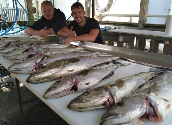 Dann lassen wir nun zum Angeln übergehen. Noch vorweg gesagt: wir haben hier sehr kurze Wege zum Fisch. Bereits in 20 Sekunden Bootsfahrt ist man an den ersten hervorragenden Hotspots - was auch viel Benzingeld und Zeit einspart. Fährt man gar 3-5 Minuten ist man an Topstellen für Seehechte, Heilbutts, Dorsche, Wolfsbarsche, Pollacks, Lachse, Meerforellen, Schollen, Schellfische, Makrelen und nahezu unzählige Fischarten die es so zahlreich nur hier in Westnorwegen gibt.