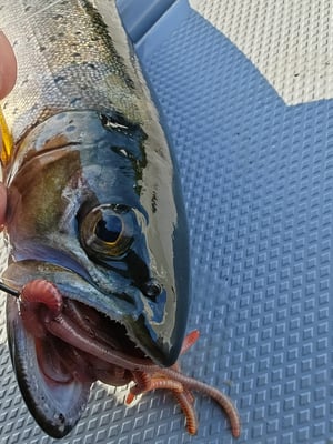 Angeln auf Mefos vom stehenden Boot oder vom Kajak ist eine aufregende Sache auch weil jederzeit auch ein anderer starker Raubfisch wie etwa Lachs, Pollack oder Wolfsbarsch einsteigen kann. Auch das gezielte angeln mit Würmern an der Pose ist immer eine der vielen spannenden Möglichkeiten erfolgreich auf Meerforellen zu sein.