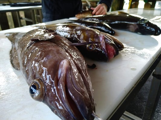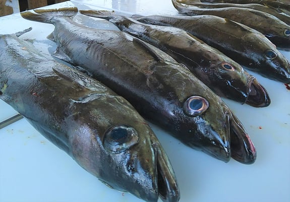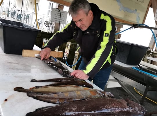 Zwischendurch kamen immer mal wieder Lengs, Lumps und Pollacks in Küchengrössen auf den Filetiertisch. Auch die keineren schmecken gut und manchmal sogar besser als die Fische die so gross sind wie Schweinehälften.