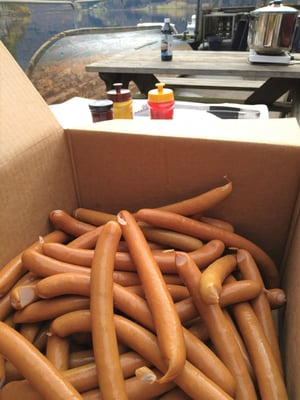 Am 4-ten Tag brodelten 2 grosse Kochtöpfe mit Wiener Würstchen für alle Teilnehmer. Für jeden soviel er wollte. Dazu gabs noch Brötchen und der schlichte aber leckere Snack war fertig - wohlwissend dass es am 5-ten Tag was sehr leckeres gibt.