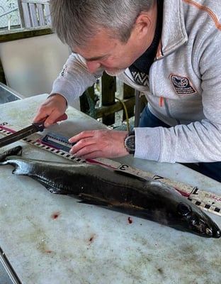 Täglich kam ich quasi als "Scharfrichter" :) hahaha . . . um 16:00 Uhr zum Filetiertisch zur Vermessung. Dabei waren die verschiedenen aufgeführten Fischarten zu vermessen und dokumentieren. Haie und Rochen waren vom Wettbewerb ausgeschlossen und wurden selbstverständlich sofort nach dem Fang schonend zurück gesetzt.